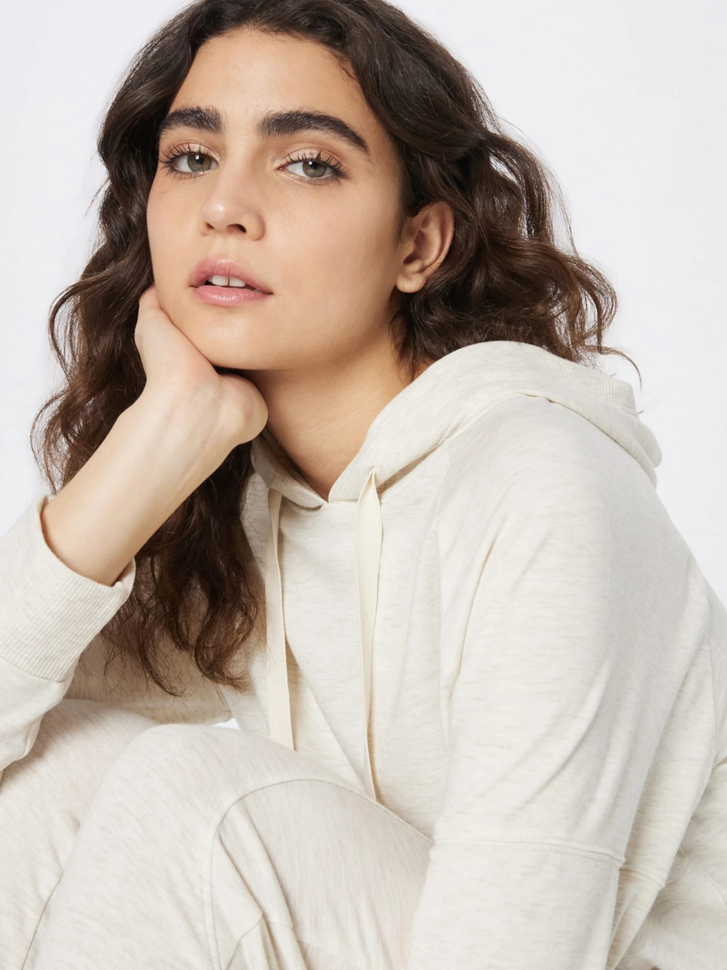EffenSweatstofCapuchonRechte zoomCapuchon met trekkoordGeribd ceintuurtjeOvercut schouderOp staal nadenBuigzame grip